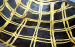 A fine antique slipware loaf baking dish with double trailed slip trail lattice pattern.