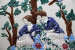 A fine and rare antique pottery relief molded plaque with image of the babes in the wood.