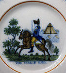 Antique pottery commemorative blue edged plate with The Duke of York riding on horseback in full military uniform. The military encampment is also shown in the background. The central panel is decorated with an underglaze print with underglaze Pratt colors.