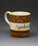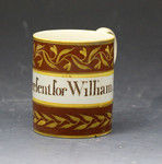 A fine antique creamware bodied mug finely decorated by hand with the inscription "A Present for William".