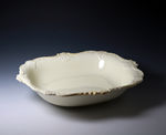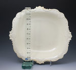 A good size and highly decorative creamware pottery dish with a rococco border.