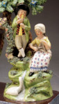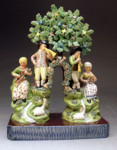 Antique Double Arbor "Songsters" Staffordshire pottery pearlware group