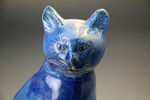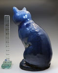 A rare blue glaze earthenware figure of a seated cat from the famous Ewenny Pottery in Wales.