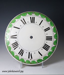 Antique English delftware clock dial with a green scrolled border late 18th century