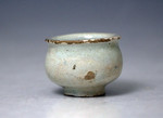 The underside of the base is slightly concave and emanates from the Lambeth delft works London in the mid 18thc. Charmingly simple and diminutive scale, a little gem and rare survivor.