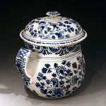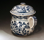 Antique English pottery delft blue and white possett pot probably London.