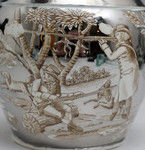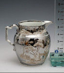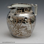 Antique English or Welsh pottery silver luster jug with underglaze sepia print circa 1815