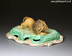 Antique English porcelain figure of a crouching lion