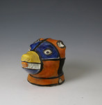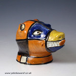 English pottery figure of a bear's head stirrup cup strongly decorated in vibrant Prattware colours.