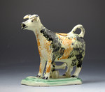 Antique English pottery figure of a cow in the form pof a creamer probably Yorkshire Pottery
