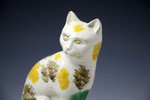 Antique English pottery figure of a seated cat with underglaze colours c1780 period ,Staffordshire