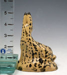 A rare English figure of a seated hare made with buff coloured clay and decorated with a profusion of underglaze dots and markings. The figure is full of decorative folk appeal especially relevant is the pert and slightly comical stare.