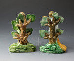 These naive figures are strongly decorated in Pratt type colors and have an unusual bocage leaf type.