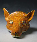 A fine antique English pottery pratt coloured fox head stirrup cup.