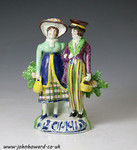 Antique English pottery pearlware figure of the Dandies, Staffordshire c1820