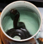 Antique English pottery pearlware mug painted blue with snake surprise circa1800