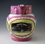 Antique English pottery pink luster pitcher from the North East Potteries early 19th century