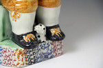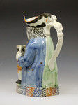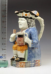Antique English pottery Pratt-ware Toby jug with figure of dog at base. c1810 period.