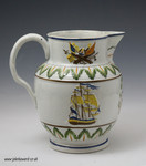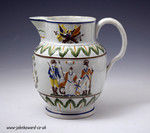 A fine, handsome and rare prattware pottery commemorative relief moulded pitcher celebrating Nelson and Britannia.