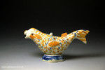 Antique English pottery prattware figure of a dolphin formed as a creamer/sauce boat with cover.
