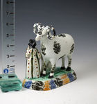 Antique English pottery prattware figure of a ram and female attendant. Yorkshire Pottery early 19th century England
