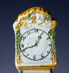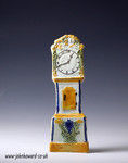 A fine English pottery model of long-case clock relief molded and decorated in strong prattware colours.