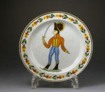 Antique English pottery Prattware plate with figure of a soldier c1795