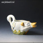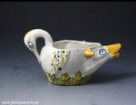 A rare English pottery pratt coloured sauce boat in the form of a swan at the tail and a fox at the head.
