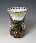 Antique English pottery prattware type stirrup cup in the form of a hare'e head c1810
