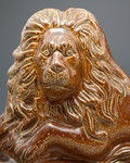 Antique English pottery figure of a lion in saltglaze earthenware.