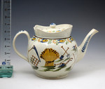 Antique English Prattware pottery Punch Pot with decoarted with farming images and the name James Thomson