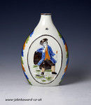 A fine English pottery Prattware coloured spirit flask with relief modelled images in cartouches of male tavern smokers and drinkers. The painting and modelling is exceptionally vibrant on this very fine quality example.The feel of the flask is wonderful full of character and echoes of the past.