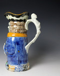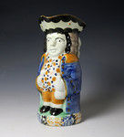 The modelling on the handle is extremely well executed with it figurative caryatid. The spongeware decoration on the base is a classic feature of the Yorkshire Potters.