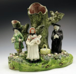 Antique English staffordshire pottery figure group of the Pig Tithe.