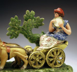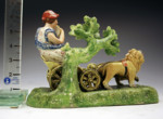 Antique English Staffordshire pottery figure of Cybele in her chariot drawn by lions