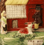 Antique Staffordshire pottery figure group titled "THE RED BARN".