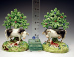 Antique English Staffordshire pottery pearlware figures of cows by Walton.