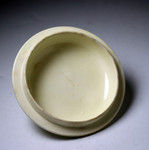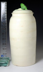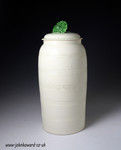 A rare and previously unrecorded tower shaped jar and cover in creamware the body with engine turned bands. The cover features a spectacular flower head finial in translucent green and the incised HERCULANEUM mark on the reverse.