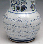 The jug is also decorated with a verse a wager challenging the drinker to empty without spilling a drop.