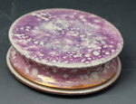 A rare and unusual pink lustre decorated circular pottery box with cover.