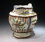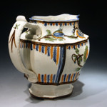Antique pottery prattware pitcher with relief moulded decoration the centre panel depicting an Eagle holding an olive branch and probably produced for the United States market in circa 1800/10 period in Staffordshire England. The modelling on this piece is very crisp and denotes an early example.