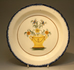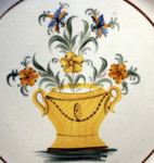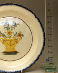 Antique pottery Pearlware Charger with basket of flowers in center panel.