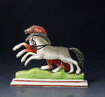 Antique pottery pearlware figure of two prancing horses, probably Swansea Pottery c1820.
