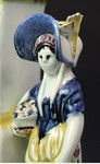 The piece is modelled with a central longcase clock and flanked by figures of a lady with a great hat and a rather weary looking farmer. The figure of the dog lying at the foot of the clock adds some humour and charm.