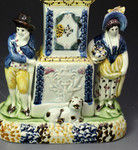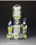 Literature: John and Griselda Lewis .Pratt Ware, English and Scottish relief decorated and underglaze coloured earthenware pages 82 and 84 illustrate similar figure clock group money boxes