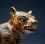 Antique English pottery model of a standing tiger on base. Circa 1790/1800 period. A rare and unrecorded figure.