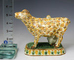 A exceptional fine and rare Prattware pearlware pottery cow creamer with milk maid.