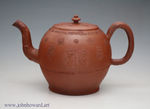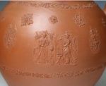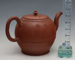 A good English pottery unglazed redware punch pot with delicately applied sprigs in the chinoserie fashion.