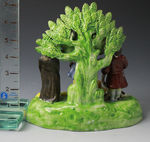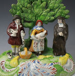 Antique English pottery pearlware bocage figure known as the Tythe Pig Group.