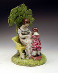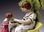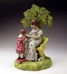 An exceptionally charming and heart warming Staffordshire pottery figure group of a mother playing a nursery game. The figure is well modelled with good attention to detail and is enhanced with quality enamel colouring and a rare and stunning bocage. The dog and cat figures also make a significant contribution to the appeal of this piece.